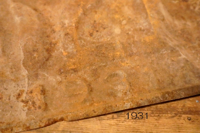 ほぼ錆びに覆われていますが、おそらくシルバー地にブラックの数字です