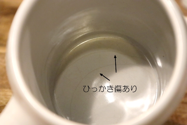 取っ手側飲み口から取っ手の下部接着面付近まで長いヒビがあります