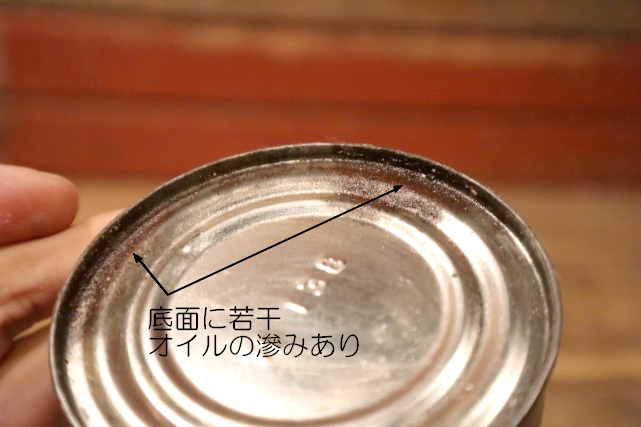 全体的に小傷、薄汚れ、細かな錆び、ボトムにかけて塗装の剥離、缶全体に若干のベタつきがあります