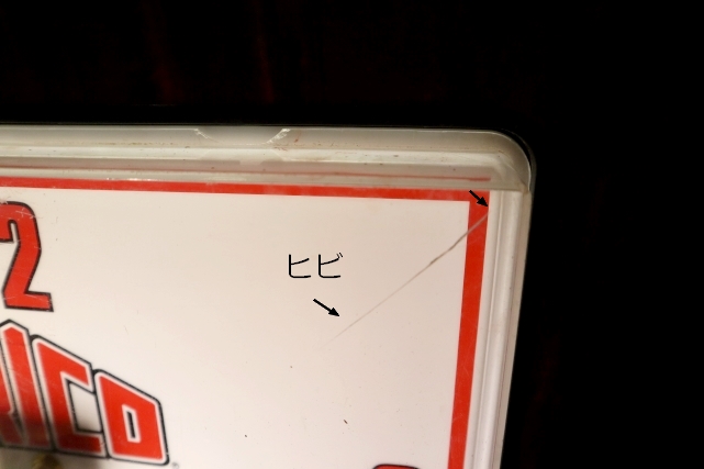 その他全体的に小傷、薄汚れ、風防右上にヒビ(3枚目画像参照)、フレーム側面黒い部分を中心に霧吹き状に白い塗料の付着有り、背面にゴムが溶けたような素材の付着有り