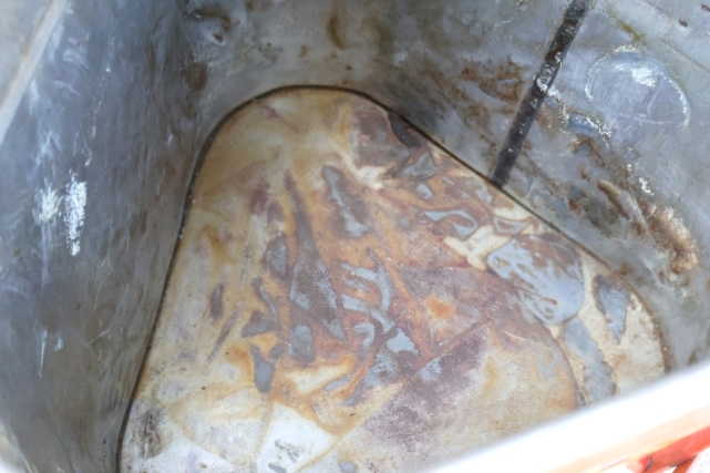 内部底面に茶色い錆び、染み汚れがありますが、ベタつきなどはありません