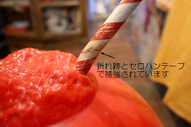 ※欠品しがちな別パーツの厚紙製ストローも付属しますが、折れ跡とセロテープでの補強跡があります