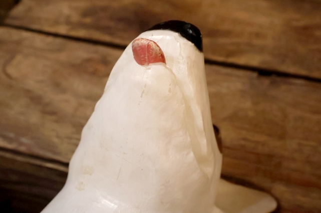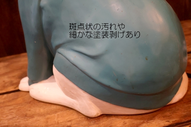 全体的に小傷、薄汚れ、まぶた、鼻や耳先、腕、背中などに細かいペイントロスがありますが大きな割れ・欠けなどのダメージはありません