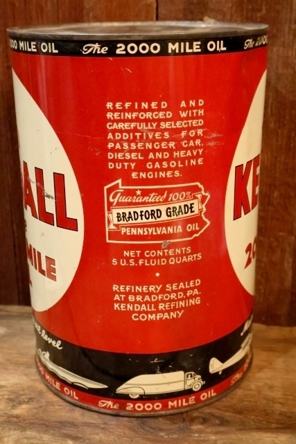 ペンシルベニア州のオイルメーカーKendall(ケンドル)の1940年代〜1950年代頃の5クウォートオイル缶です