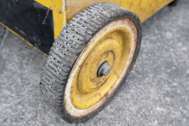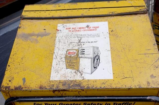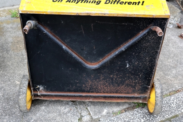 当時ガスステーションなどに設置されていた物で、後部に取っ手と下部に車輪が付いています