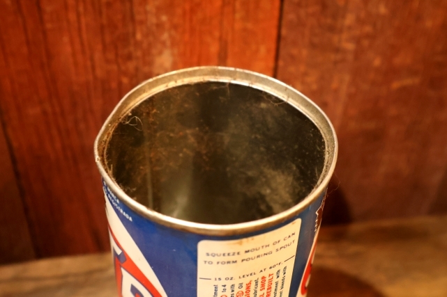 開封済みで全体的に小傷、薄汚れ、小さな凹みや歪み、缶底部に若干オイルの付着有り