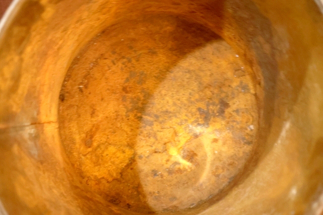 メイン画像上部SHELLのロゴ付近に小さな凹みが数か所あり(2枚目画像参照)貫通はしていません