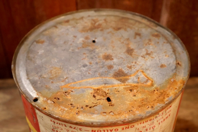 メイン画像上部SHELLのロゴ付近に小さな凹みが数か所あり(2枚目画像参照)貫通はしていません