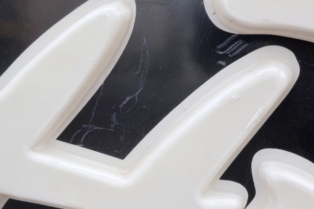 ロゴの形に型取りされており、文字もしっかりとエンボス加工されている躍動感のある看板です
