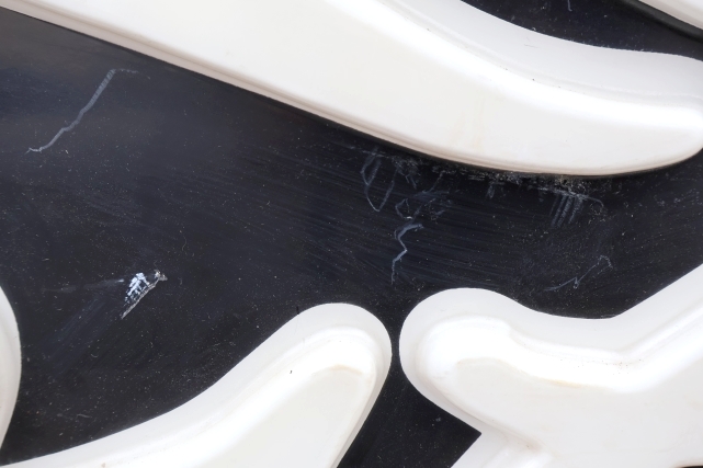 黒い部分に水拭き程度では落ちない薄いヒビ上の汚れあり(5枚目画像参照)