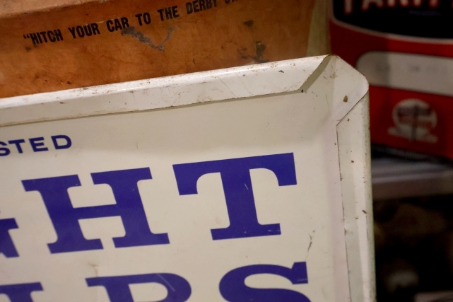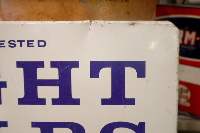 元々はディスプレイラックのトップに付いていたサインで、片面はワイヤーが入っていたため端が内側に折れている仕様です