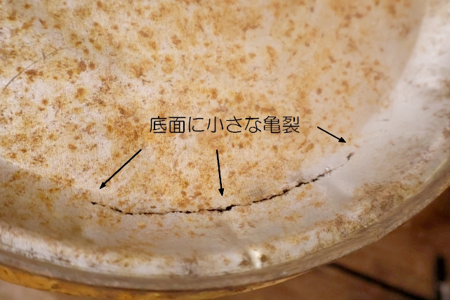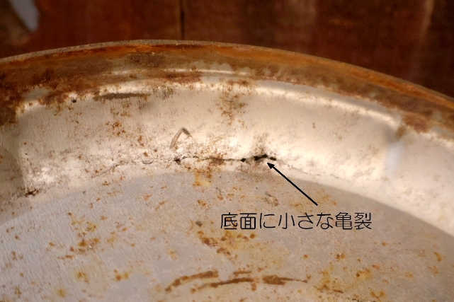 また底部に薄い亀裂がありますが、現状缶を振ってもそこから何か漏れ出す感じはしません