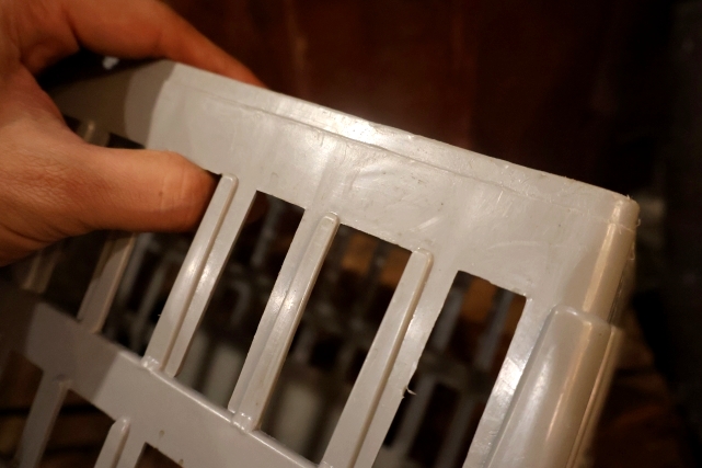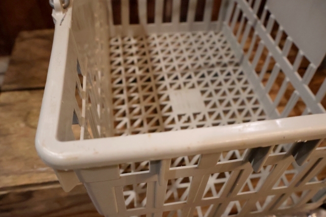 プラスチック製で大きなヒビ、欠けはありませんが、実際に使用されていたもののため傷や圧力がかかった部分が白く変色している部分があります