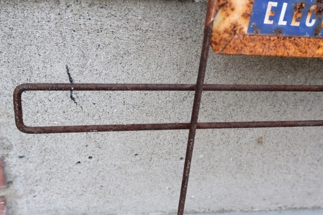元々はディスプレイラックのトップに付いていたサインで、ワイヤーが残っている状態です
