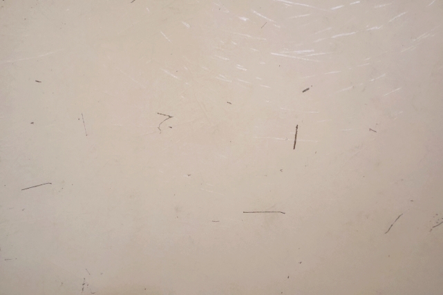 2mmほどの薄めのアクリル製(表面はグラスファイバーのような見た目)で全体的に小傷、薄汚れ、細かな塗装剝げ、右下の角は丸くなっています