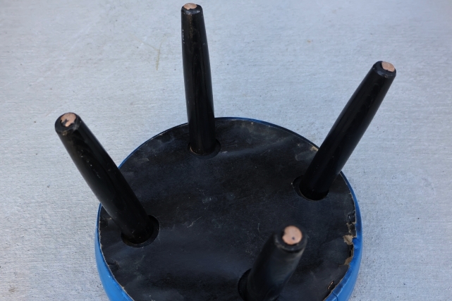 ビニール製の座面は小傷、シワの間に薄い汚れ、中央付近に重い物が長期間乗せてあったのか、円形のくぼみがあります(6枚目画像参照)
