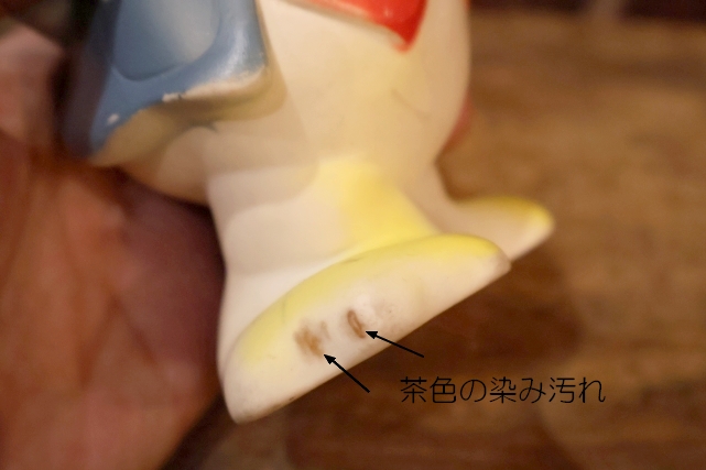 全体的に小傷、薄汚れ、くちばしや服に細かな塗装剝げ、黄ばみなどありますが、大きなダメージはありません