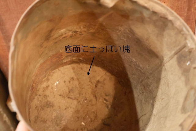 中は空の状態ですが底部にオイルと土が混ざったそうな塊が付着しています(洗浄すれば多少落ちるかもしれませんが現状でのお渡しです)