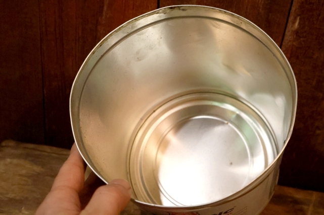 缶上部がキレイに開封されており、中は空の状態ですが、切り口に鋭利な箇所があるのでご注意ください