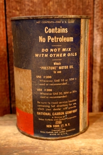 NATIONAL CARBON COMPANY PRESTONEの1クウォートモーターオイル缶です