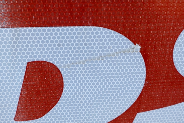 実際にロードサイドなどに掲げられていた物のため、全体的に小傷、薄汚れ、薄いヒビ割れ、色褪せなどがあります