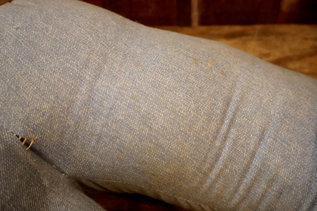 全体的に使用感、薄汚れ、パンツに薄く斑点状の茶色い染み、左腕の付け根に破れあり