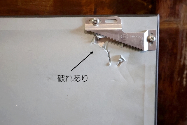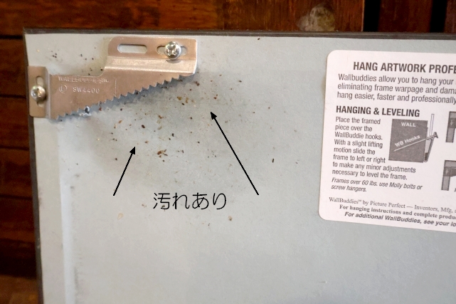 フレームには縁に擦れ、背面上部フック部分に汚れと破れがあります