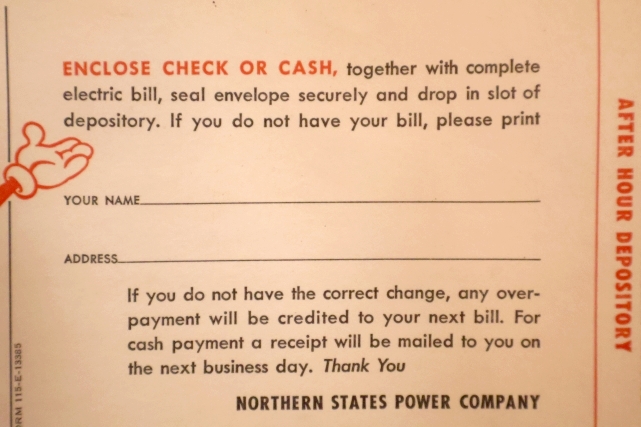 1950年代頃のNORTHERN STATES POWER COMPANY(NSP)の電気料金支払い用封筒です