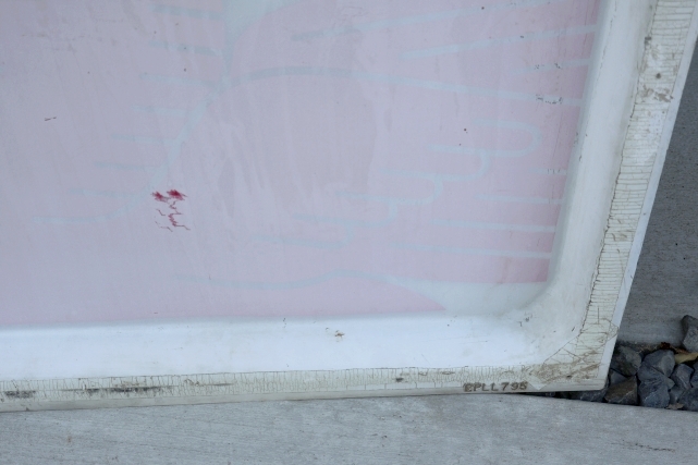 元々はガスステーションなどで実際に使用されていた電飾サインだった物の前面カバー部分の為、光を通す素材です