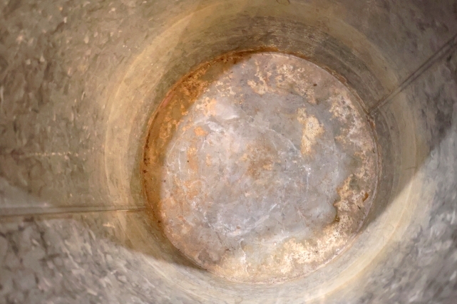亜鉛メッキ製で錆びにくい素材ですが、内部底面端に少々錆びあり
