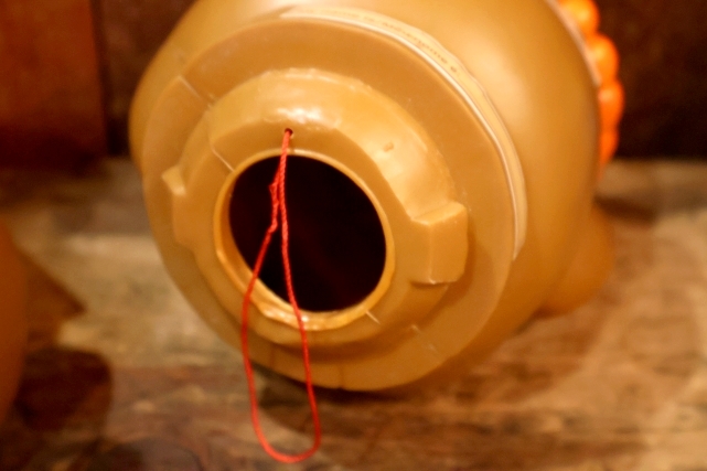 オレンジのビーニーを被ったクマのキャラクターのボディ部分にお菓子が入っていた物です