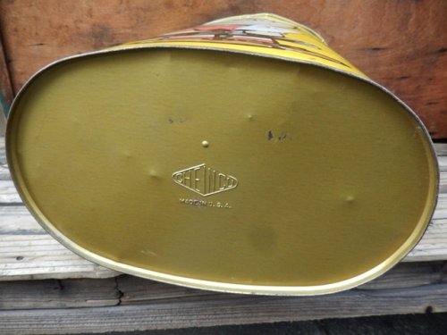 キャニスターやゴミ箱などティン缶の老舗CHEINCO社製で、底にあるエンボスのロゴマークから推測すると1970's〜1980'sのものと思われます。