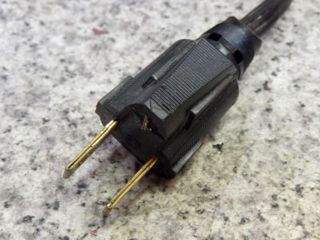 プラグは元々三叉式のものですが、アース棒を切り落としているため通常のコンセントに差し込めます。