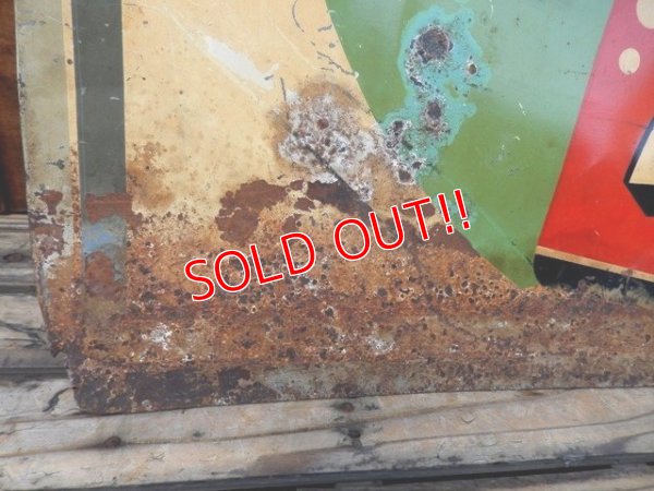 アメリカの人気ドリンクメーカーの販促用看板(ペンキ塗装)で、オールドなロゴと色褪せたカラーリングにメタルの錆び具合がヴィンテージならではの抜群の雰囲気でとてもカッコイイです。