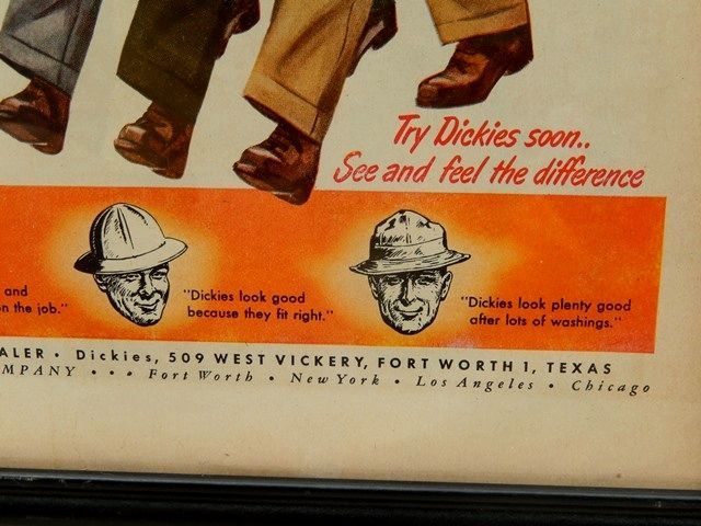 ad-140702-03 Dickies / Vintage AD ad-140702-03 Dickies / Vintage AD 販売価格: 4,400円(税込) 在庫なし Tweet 返品特約に関する重要事項 お問い合わせ お気に入り登録 1950年代頃のディッキーズの広告です! 1922年から続くアメリカを代表するワークウェアブランド。 渋い色使いも最高です。 コピー品ではなく、当時の雑誌の広告を切り取ったものになります。 多少の色焼けがありますが、逆に雰囲気があります。 フレームは新品(表面はガラス)ですがに枠に小傷などあります。 サイズ:縦約37.5cm 横約30cm 厚さ約1cm 他の写真 ad-140702-03 Dickies / Vintage AD 販売価格: 4,400円(税込) 在庫なし Tweet 返品特約に関する重要事項 お問い合わせ お気に入り登録