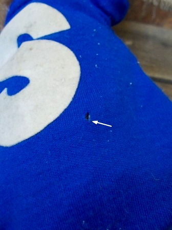 サイモンのメガネが欠品、服に小さな穴が開いています。