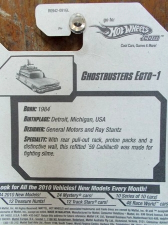 2010年のHotwheelシリーズより。ゴーストバスターに登場するEcto-1(霊柩車)です!