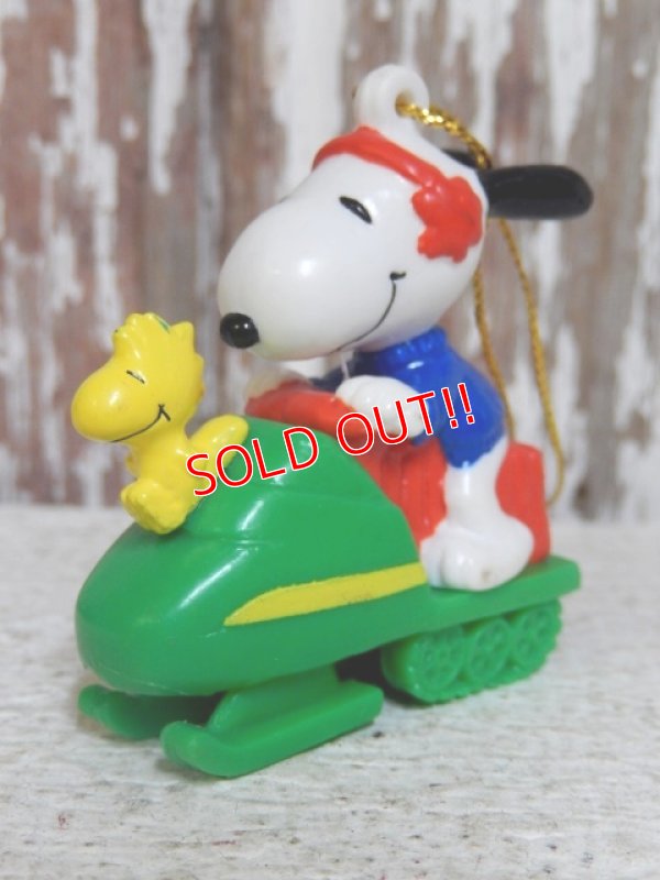 サンタ姿のスヌーピーがスノーモービルに乗っています☆