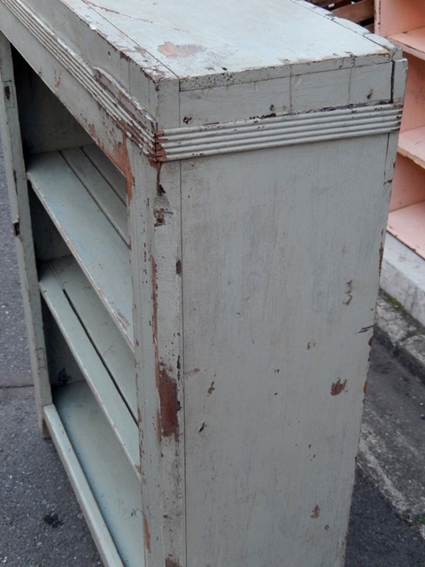 グレーにペイントされた棚ですが、所々にあるペイント剥げやダメージが雰囲気があります。