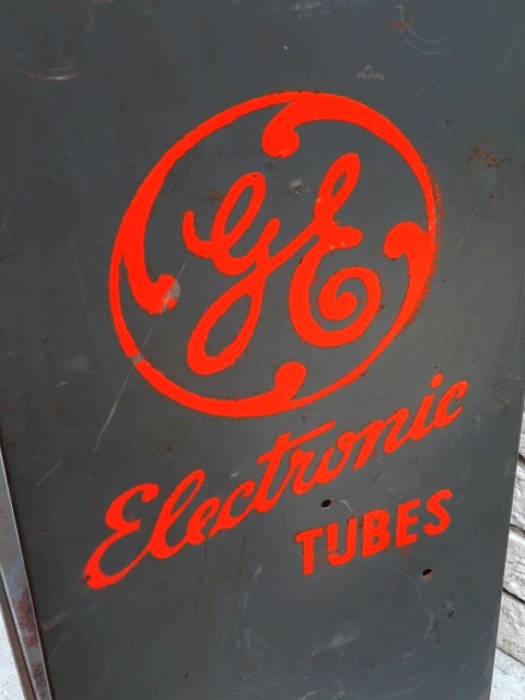 GE TUBEなので、真空管などが陳列されていた棚と思われます。