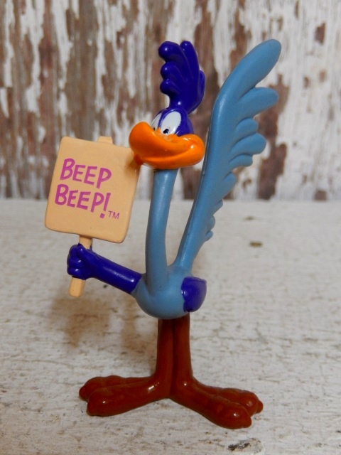 ロードランナーがBEEP BEEP!と書かれたサインボードを掲げています☆