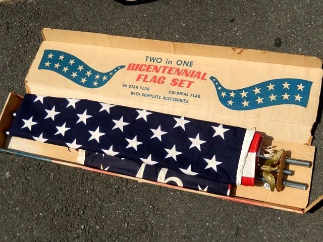 現在と同じ50個の星がある旗と建国200周年時のデザインの旗をポールに付けられるセットです。