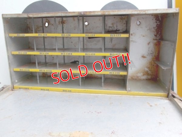 小さな部品が収納・陳列されていたもので扉を前方に開くと小さな仕切りがあります。